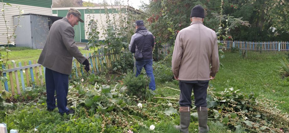Не раз в течение лета активисты ветеранской организации проводили субботники в сквере перед зданием городского совета ветеранов – ухаживали за цветами на клумбе, выкашивали и удаляли траву, поливали саженцы деревьев. В одну из сентябрьских пятниц собрались в условленное время и приступили к работе. Предстояло сделать немало. И работа закипела. Убирали накопившийся мусор с территории сквера, поправили колышки у саженцев, удалили высохшие цветы, а затем начали обрезку молодой поросли кленов, лишних веток больших деревьев, затеняющих окна.