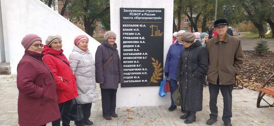 В один из октябрьских дней в этом мини-сквере собрались ветераны-строители, их коллеги по ветеранской работе других профессий, осмотрели результаты работ и выразили общее удовлетворение. Председатель совета ветеранов треста «Юргапромстрой» Фаина Закировна Рудык напомнила историю треста, вспомнила годы ударного труда строителей и поздравила собравшихся с 80-летием треста «Юргапромстрой». Председатель городского совета ветеранов Александр Григорьевич Евдокимов подчеркнул, что, в свое время, место для стелы, а теперь – и для нынешнего мини-сквера выбрано очень символично – на изгибе улицы Строителей и пересечения ее с ул. Комсомольская, напротив главного входа в парк, который в прежние времена назывался парком Строителей, а теперь носит имя А.С. Пушкина.