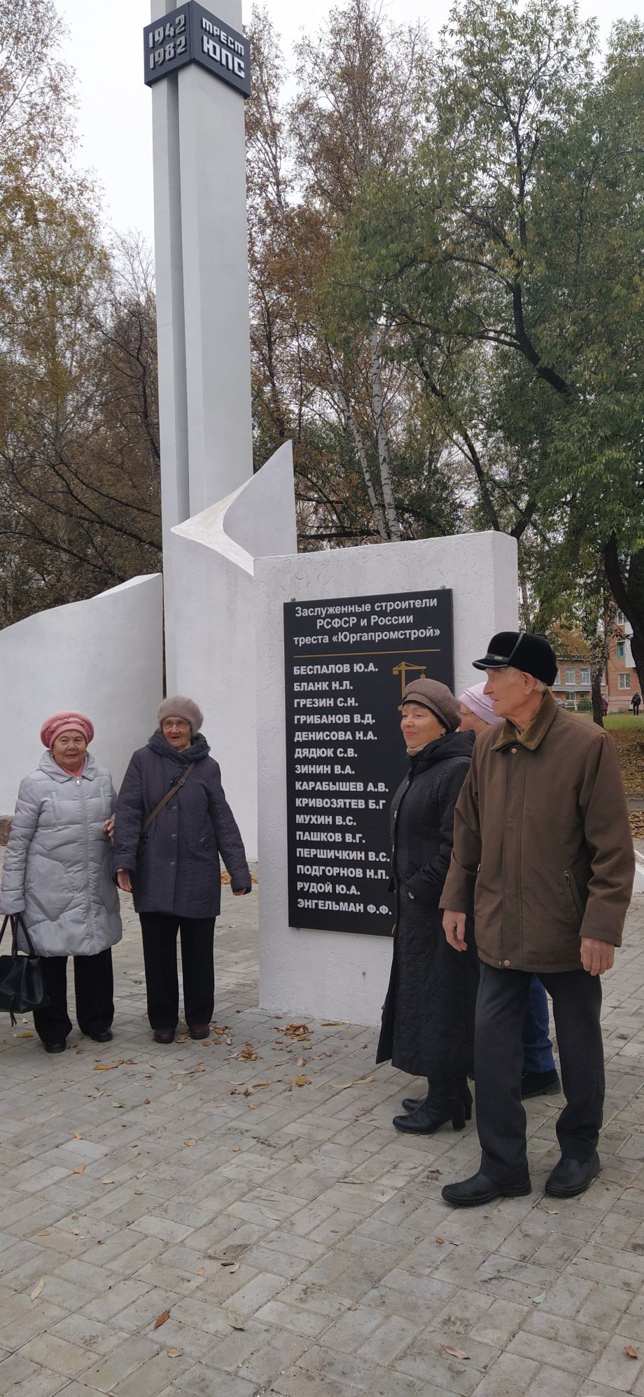 Сорок лет назад, к 40-летнему юбилею треста «Юргапромстрой», в Юрге была установлена стела, на которой на высоте 5-го этажа закреплены памятные таблички «1942-1982» и «Трест ЮПС». Рядом – панно с фамилиями Заслуженных строителей РСФСР и России, сегодня на нем 15 имен. Со временем комплексу потребовался ремонт, и в этом году ремонт самой стелы и комплекса сооружений рядом, а также благоустройство прилегающей территории был организован Администрацией города. Получился настоящий мини-сквер – уложена тротуарная плитка на площадке, выполнено асфальтирование дорожек, установлены парковые диваны, смонтировано освещение. Выполнить работы по благоустройству мини-сквера у памятника строителям стало возможным, благодаря реализации федерального проекта «Формирование комфортной городской среды».