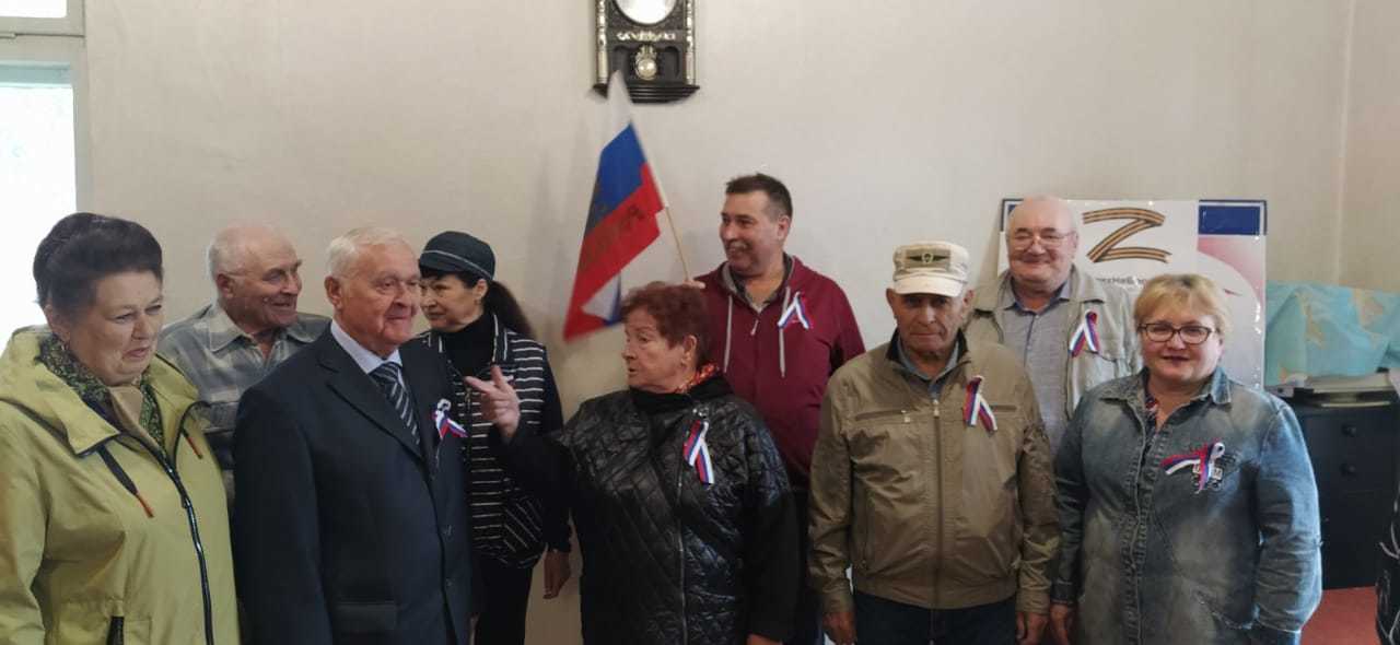 Провели рабочую встречу ветераны ИК-41. Проходила она в День Государственного флага России в городском совете ветеранов. Во встрече участвовали и руководители Местной общественной организации ветеранов Юргинского городского округа А. Евдокимов и М. Моисеенкова. Разговор шел о подготовке к юбилею учреждения, которое состоится в октябре. Активисты ветеранской работы откликнулись на информацию А. Евдокимова об участии в областной акции по сбору средств на восстановление Горловки и внесли добровольные взносы в общее дело. Затем в честь Дня Государственного флага РФ руководители городской ветеранской организации собравшимся вручили ленточки триколора, прикрепили к одежде и сделали общую фотографию.